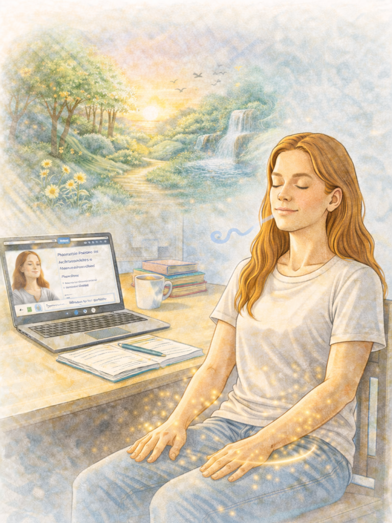 Meine Online-Entspannungskurse unterstützen Studierende dabei, zur Ruhe zu kommen, Stress abzubauen und einen gesunden Ausgleich zum Studienalltag zu finden.